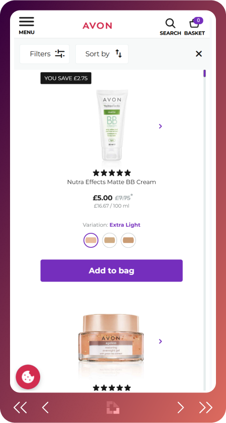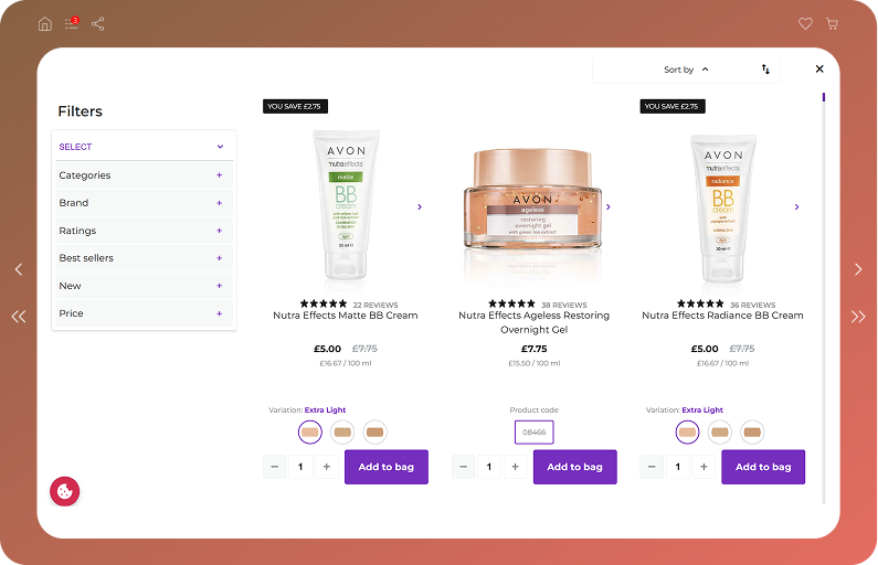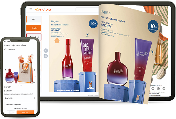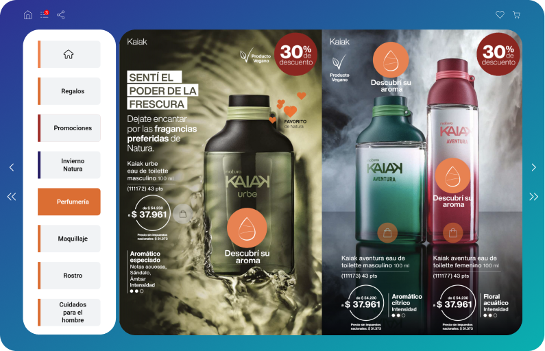 Digital catalogue on desktop and mobile, featuring intelligent product suggestions driven by artificial intelligence.