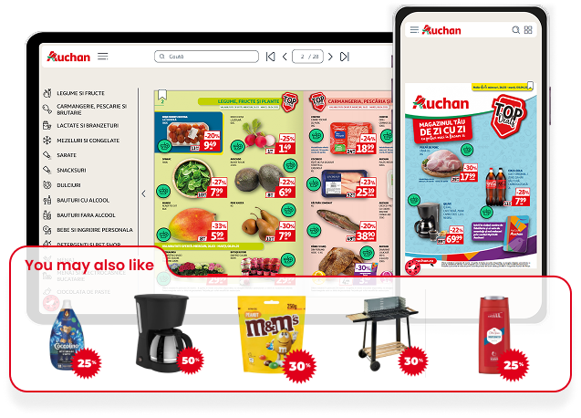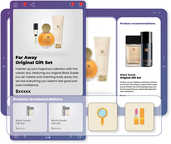 Recommendations appear inside flipbooks, product display pages and carts—helping customers discover more and buy more.
